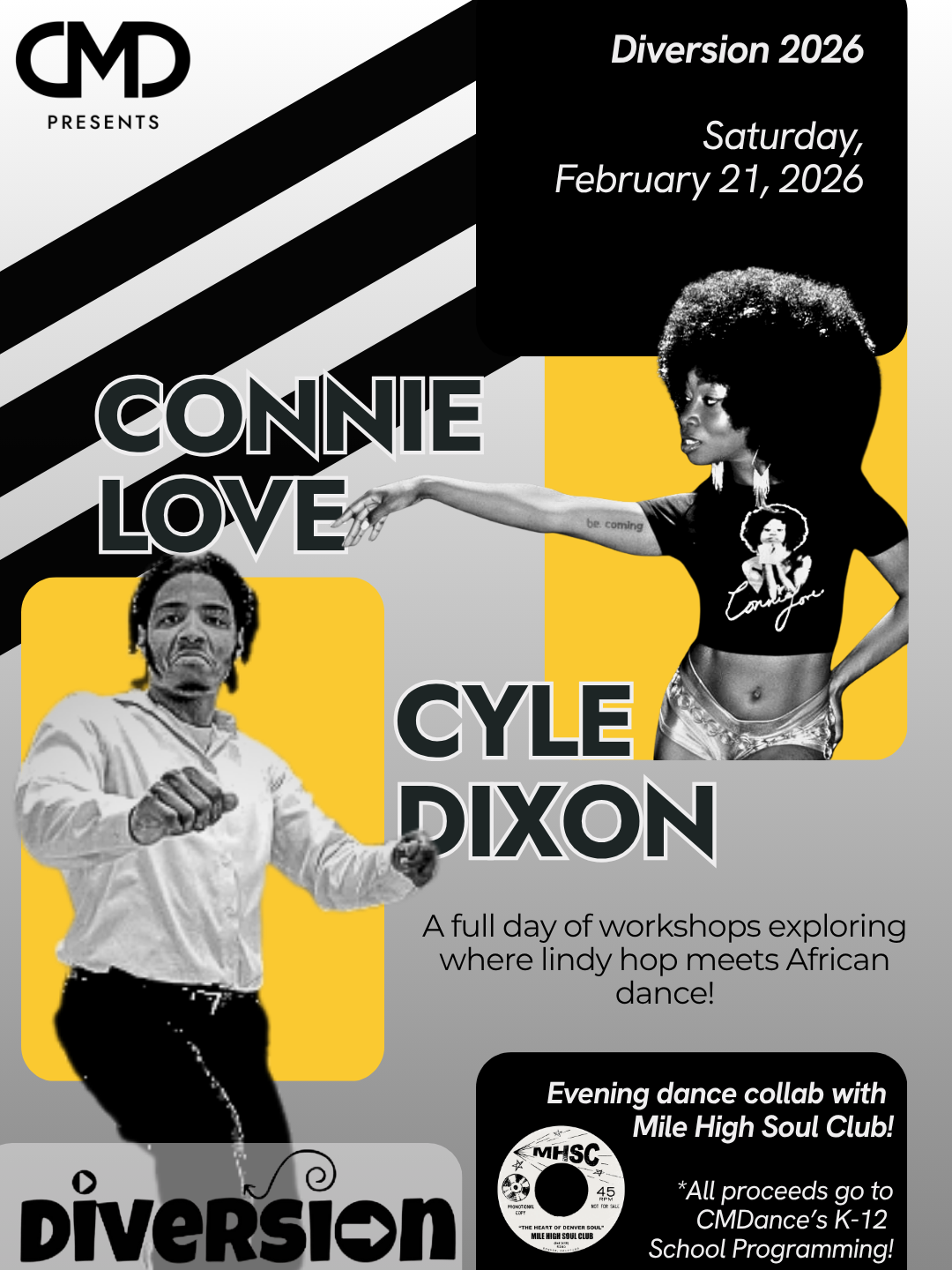 In our classes, Cyle Dixon and Connie Love will be focusing on where African dance meets lindy hop!